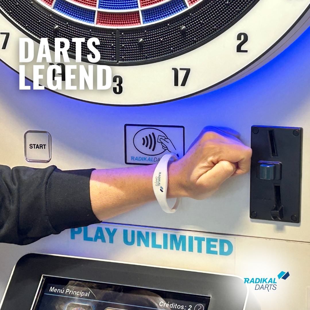 PULSEIRA RFIDA nova pulseira RFID da Radikal Darts permite que você se identifique rapidamente no alvo de dardos: basta aproximar a pulseira do leitor e começar a jogar instantaneamente.